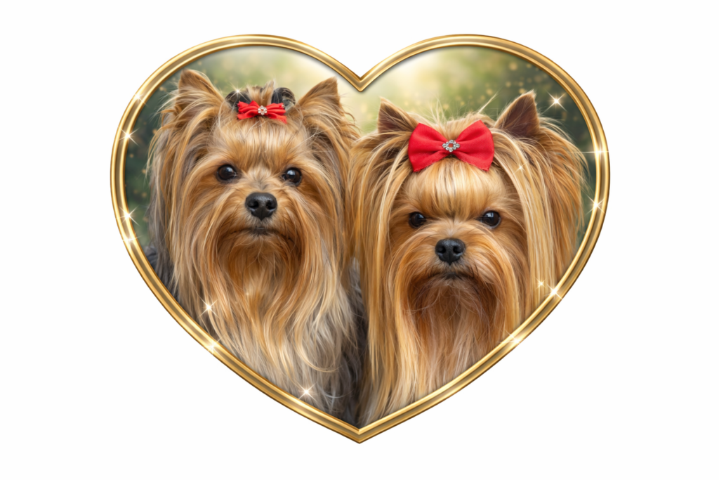 Spojení bylo pečlivě zvoleno s důrazem na zdraví, povahu a typické znaky plemene yorkšírský teriér.